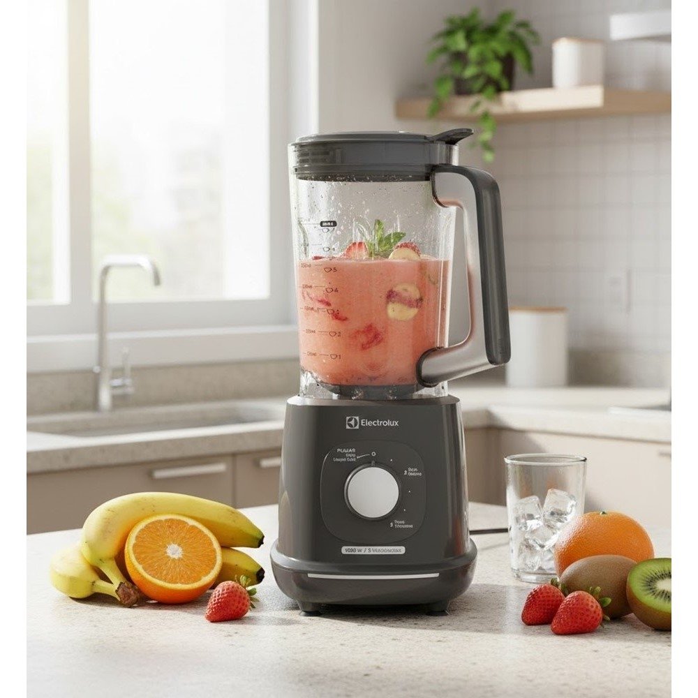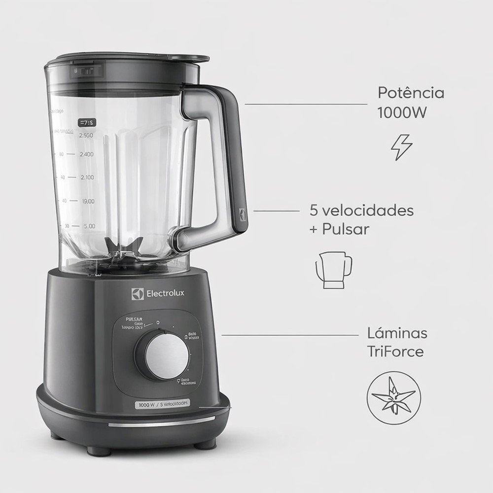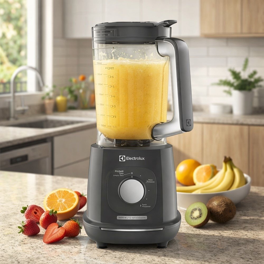 O Liquidificador Electrolux EBL1000 Efficient foi feito para quem quer praticidade real na cozinha: mais potência para triturar com facilidade e uma jarra grande para preparar mais de uma vez só. Com 1000W e 5 velocidades, você ajusta o preparo para cada receita - do suco do café da manhã ao creme e à massa leve do lanche.
