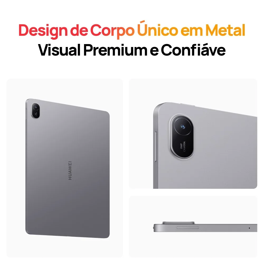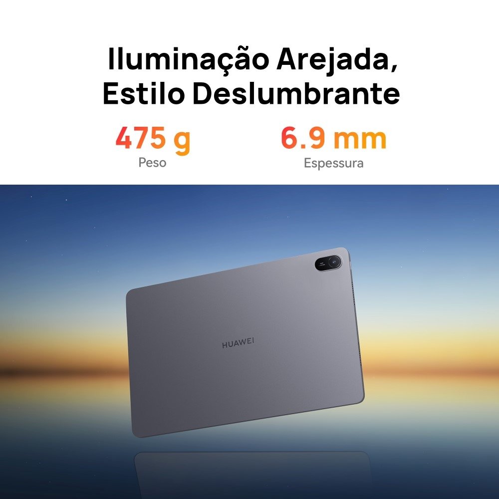 No acabamento Cinza Nebula, o MatePad SE mantém um visual discreto e moderno, combinando com ambientes de estudo e trabalho e com uma rotina mais dinâmica.