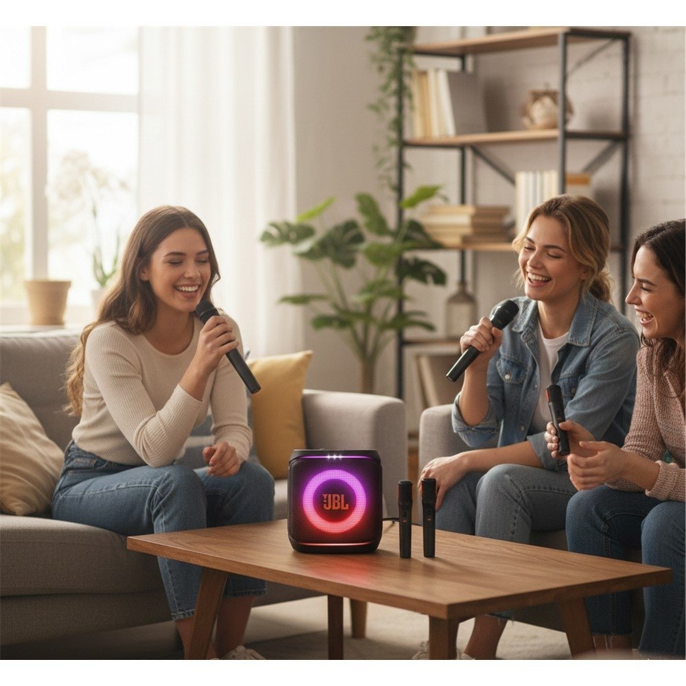 Para completar, a PartyBox Encore acompanha 2 microfones sem fio JBL, ideais para karaokês, apresentações ou momentos de interação, tornando o uso mais versátil e divertido - tudo isso com a confiabilidade de uma marca referência mundial em áudio.
