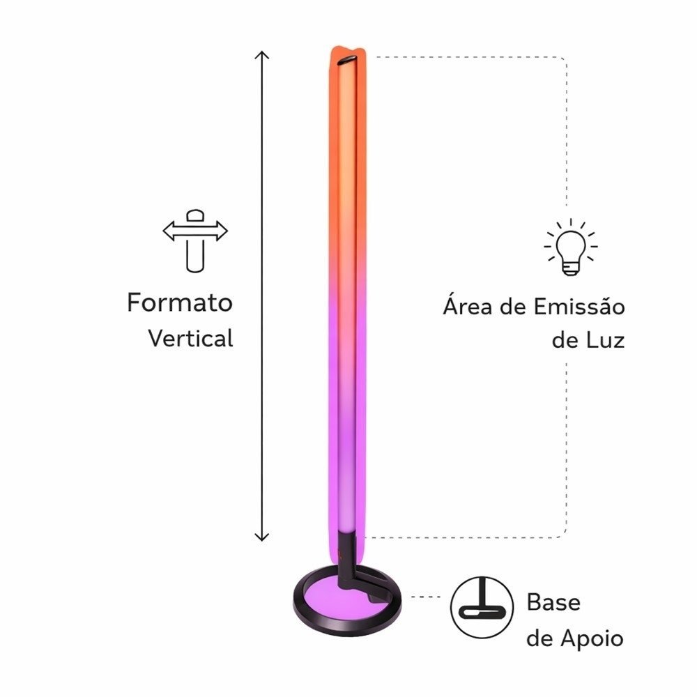 Seu formato vertical proporciona distribuição uniforme da luz, ajudando a preencher o ambiente sem pontos escuros. É a escolha ideal para quem busca mais presença visual, clima animado e praticidade, seja em festas em casa, encontros com amigos ou eventos descontraídos.
