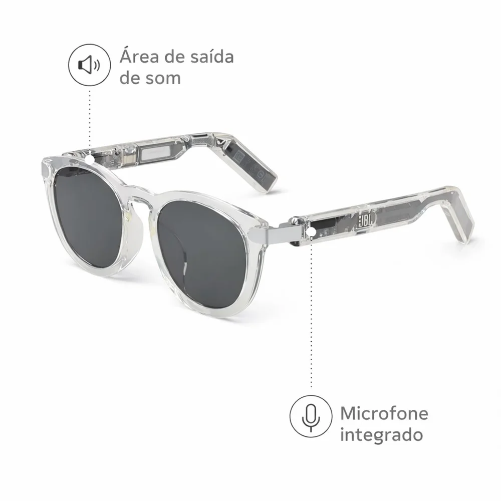 Os Óculos JBL Bluetooth Soundgear Frames unem estilo e tecnologia para quem quer ouvir música e atender chamadas com mais praticidade - sem precisar usar fones dentro do ouvido. É uma solução inteligente para a rotina: você mantém a sensação de liberdade enquanto curte seu conteúdo no caminho do trabalho, em uma caminhada ou durante tarefas do dia.